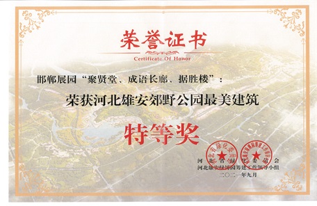 “最美建筑”特等奖——“聚贤堂、成语长廊、据胜楼”