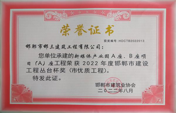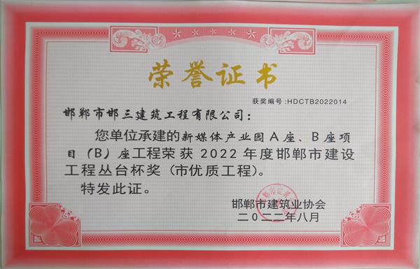 2022年度邯郸市建设工程丛台杯奖(市优质工程)
